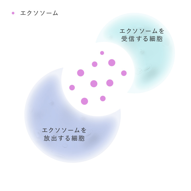 細胞から分泌される⼩さなカプセルです。近年、エクソソームには有効な成分が含まれているという研究結果が発表されてから注⽬を浴びています。
