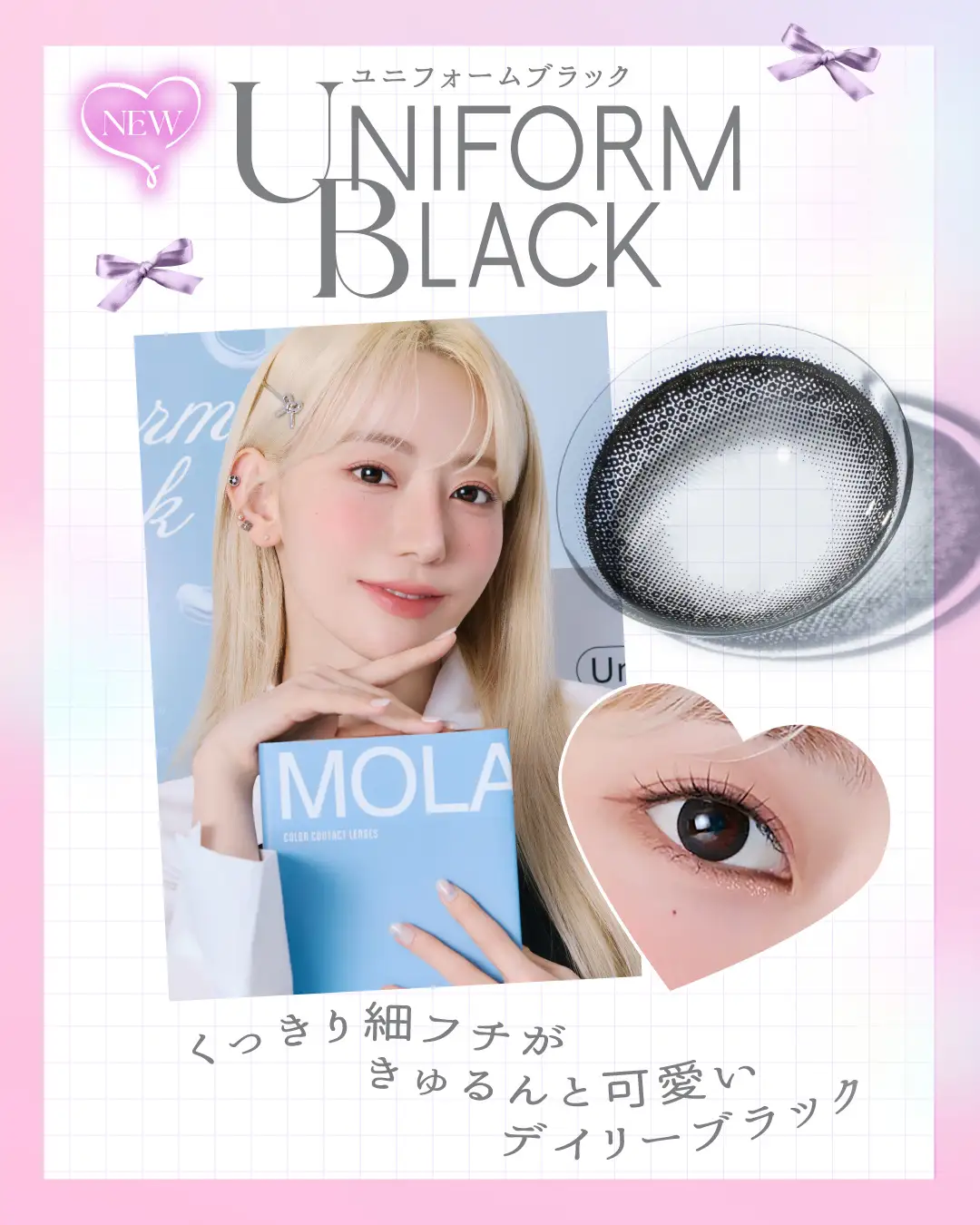 ※『Dream Gray(ドリームグレー)』『Uniform Black(ユニフォームブラック)』は、1day、1month同じカラーでの販売となりますが、それぞれ含水率が異なっておりますため発色に若干の違いがございます。